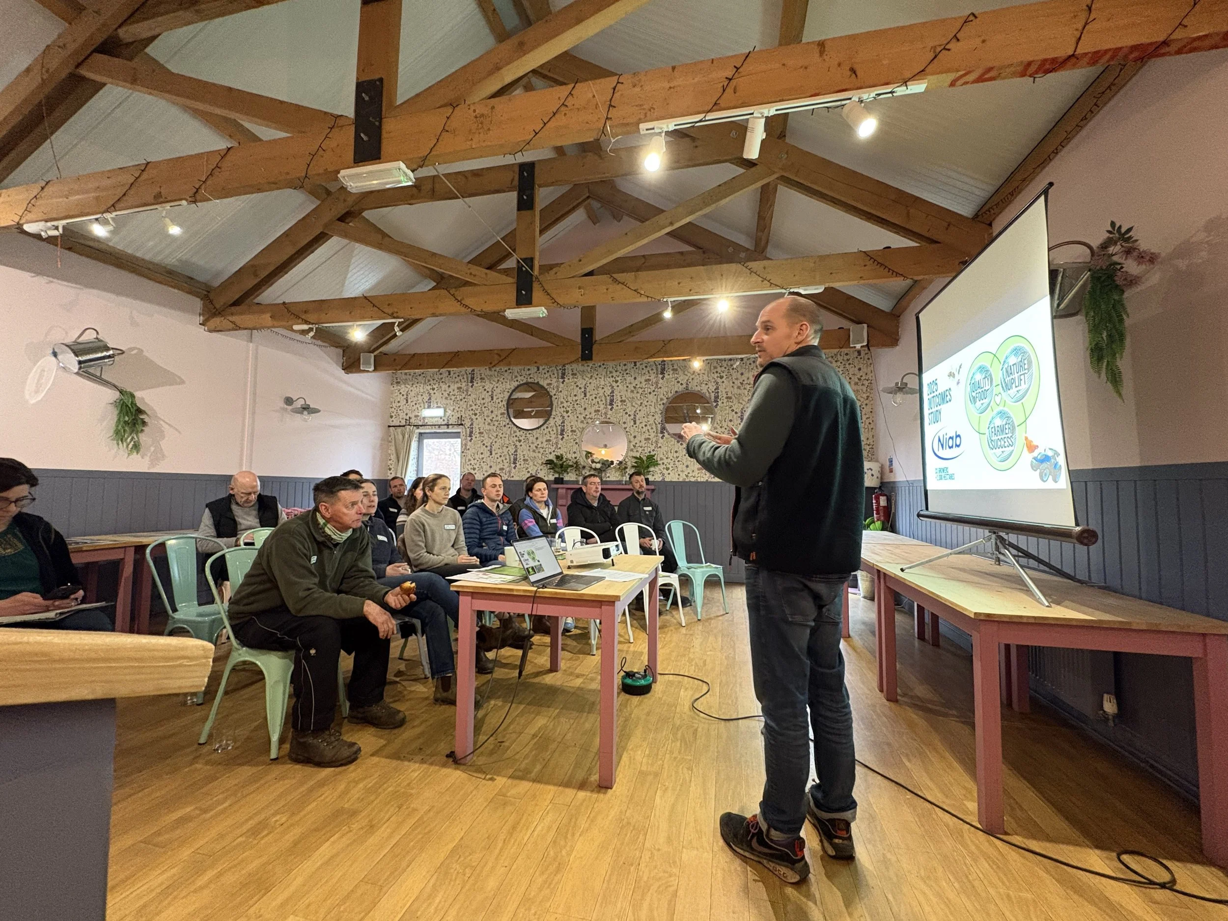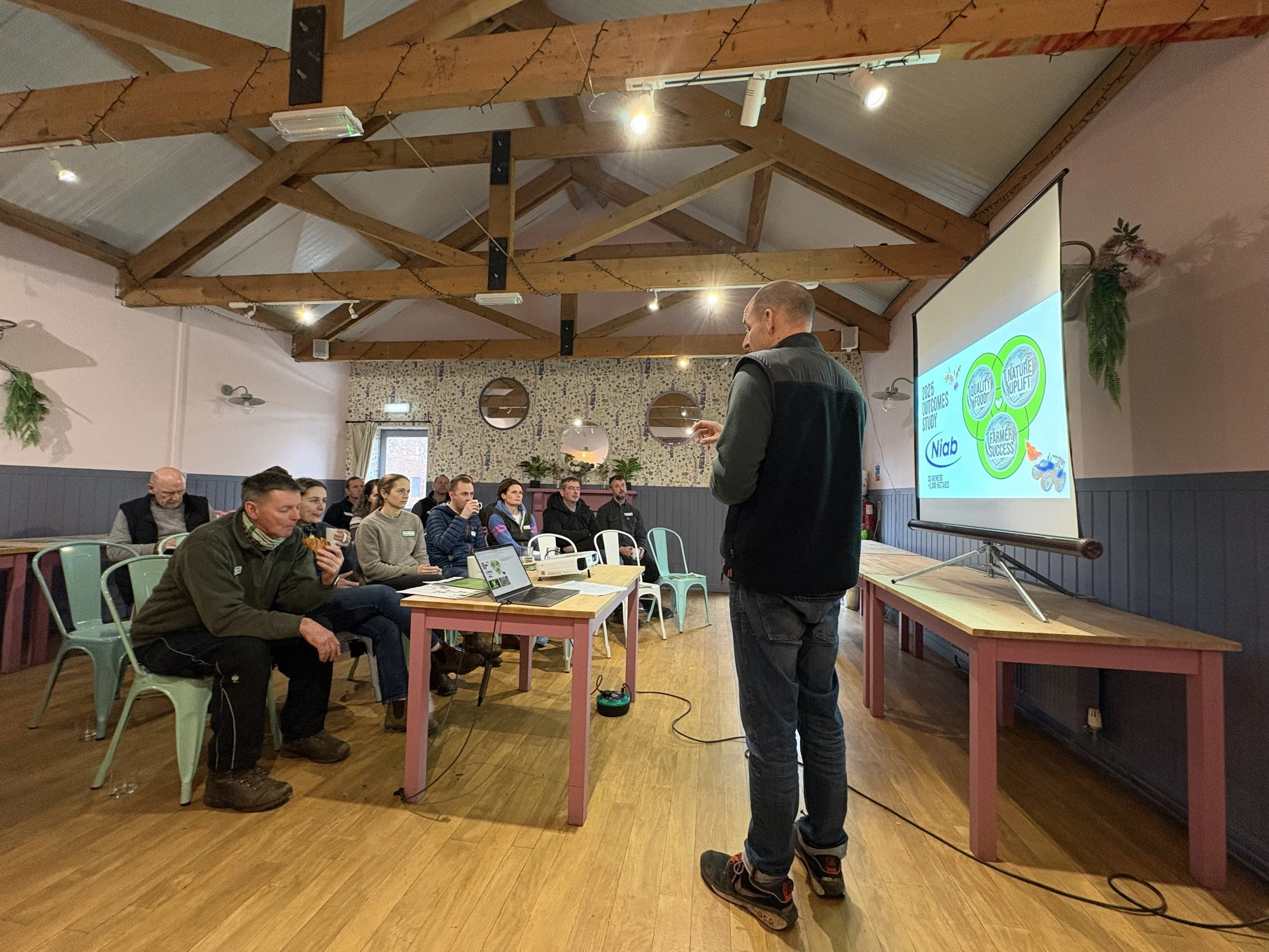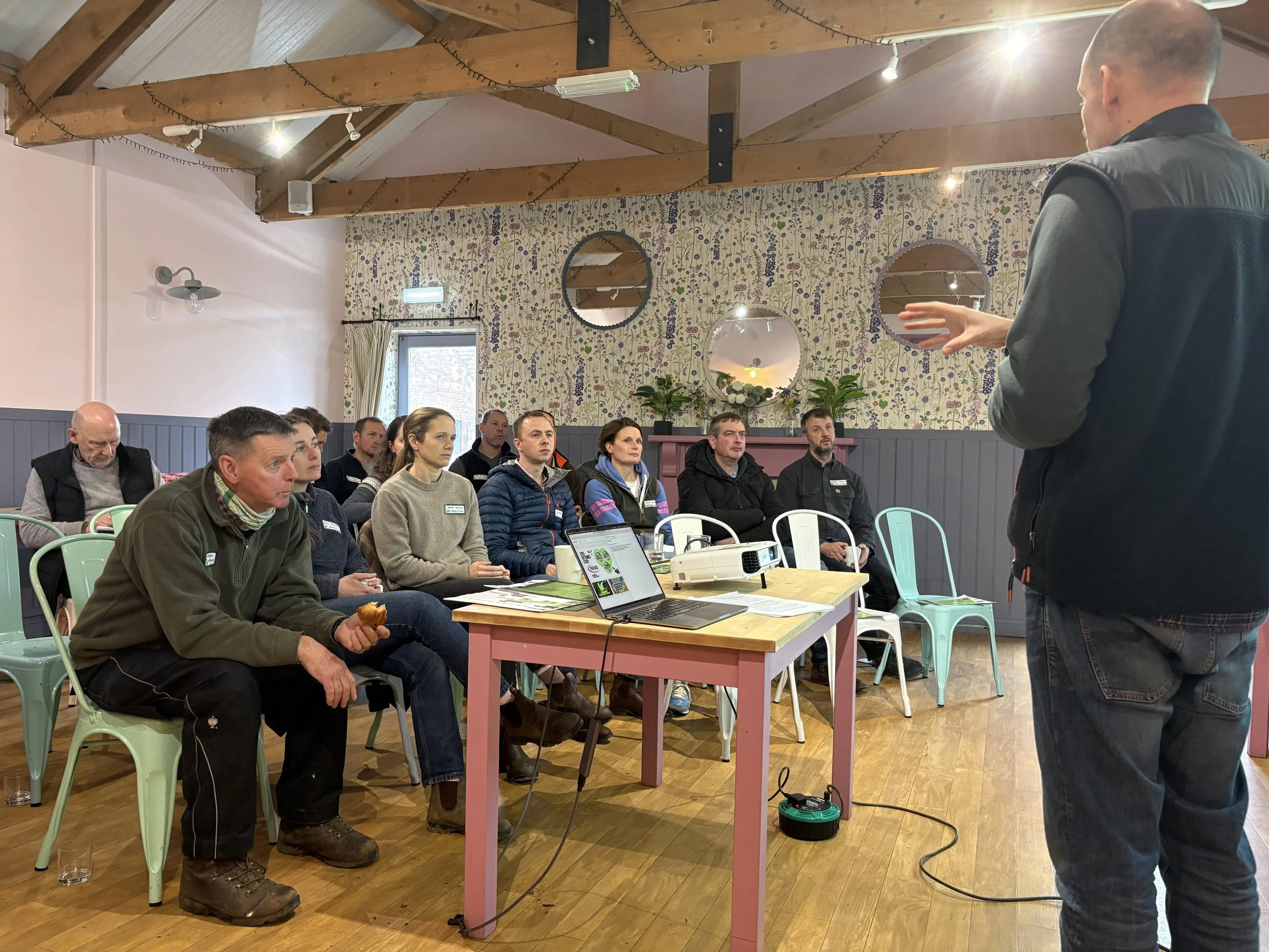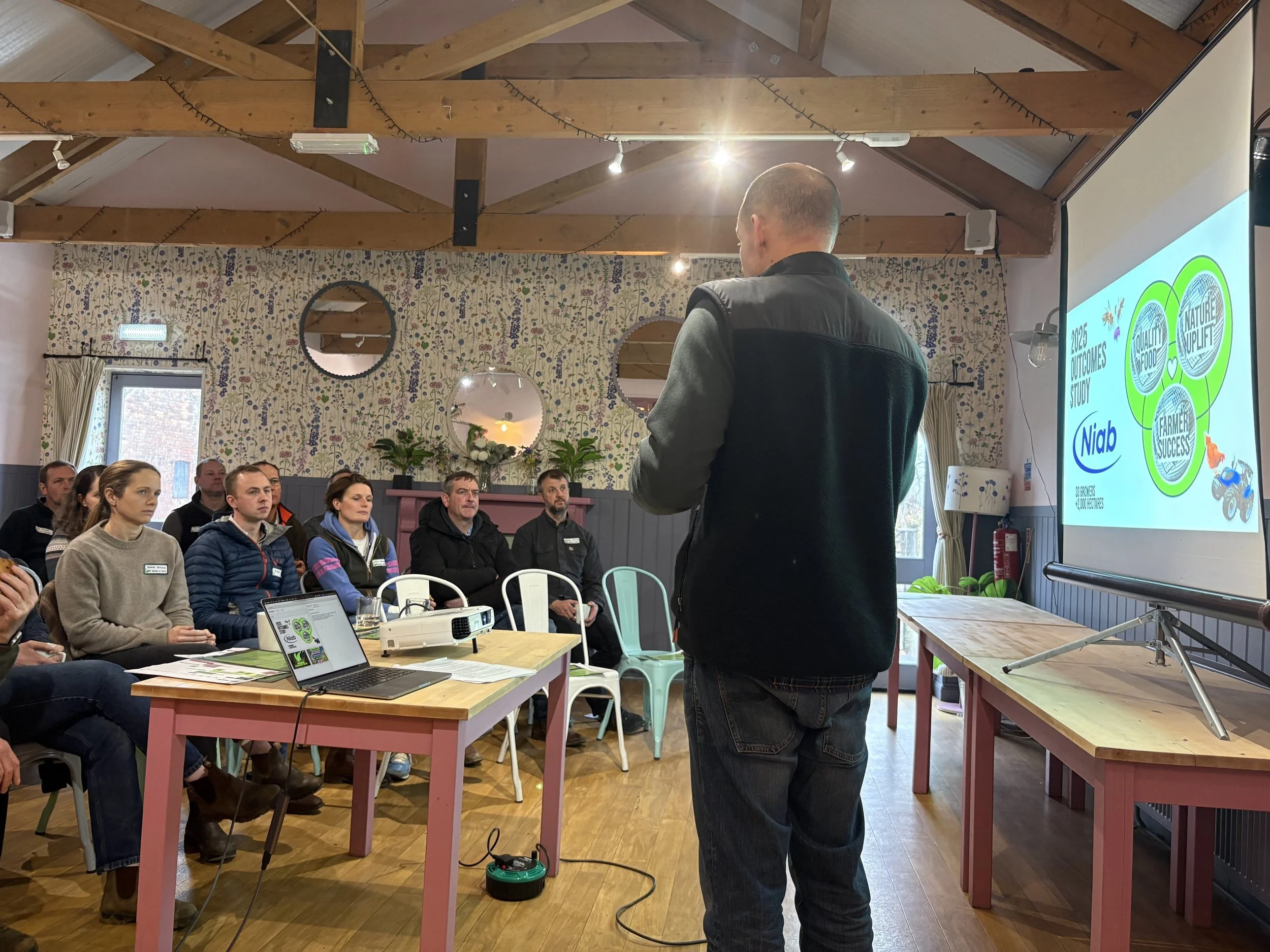 Farmer Anna at the Pink Pig Farm grows oats for regenerative farming organisation Wildfarmed. So we were delighted when they chose our event space as the setting for their North Regional Agronomy Event in February 2026.